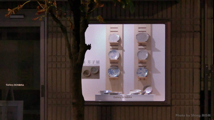 通りに面したウインドウはギャラリーが閉まった後も照明がついて道行く人を楽しませています。
