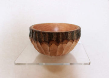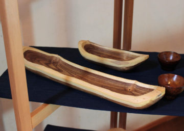 樹皮の部分を残した小鉢です。 平たいお皿が並びます。