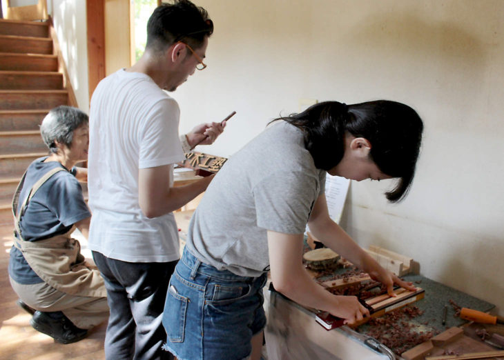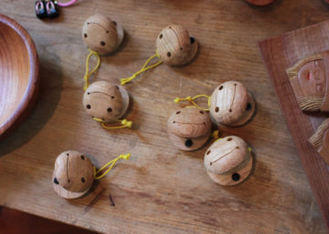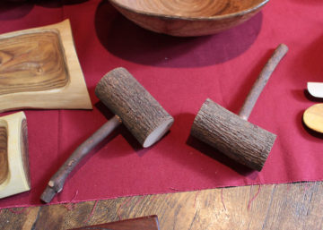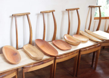 材料は小笠原の「アカギ」という木です。世界自然遺産の小笠原では赤木は外来種。駆除する活動が続いていますが、木工塾では少しでも役立てればという思いで小笠原関連のイベントには積極的に参加しています。