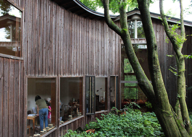 ギャラリーからお店の方を見上げたところ。斜面に建てられた建物なのでギャラリー部分が低くなっています。