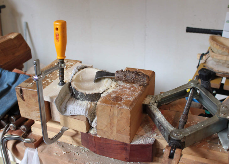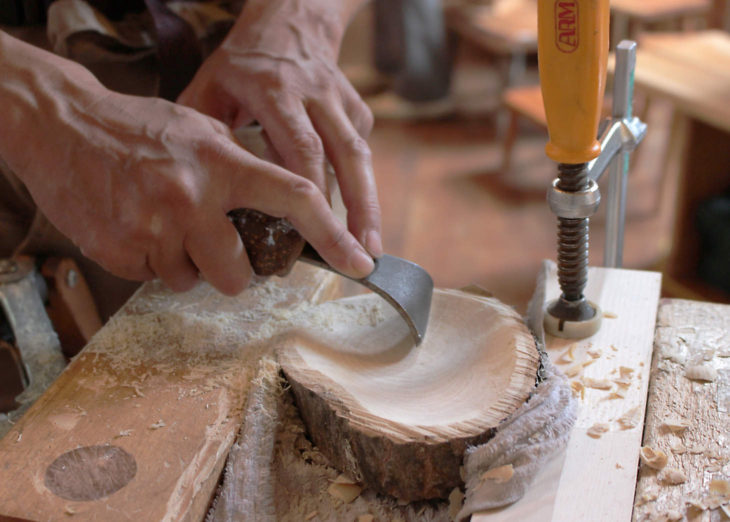 こちらは、丸のみでお皿の外側を削っているところです。