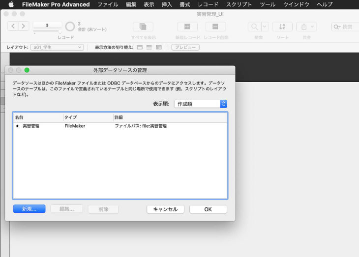 実習管理_UIから外部データソースとして実習管理を選択します。