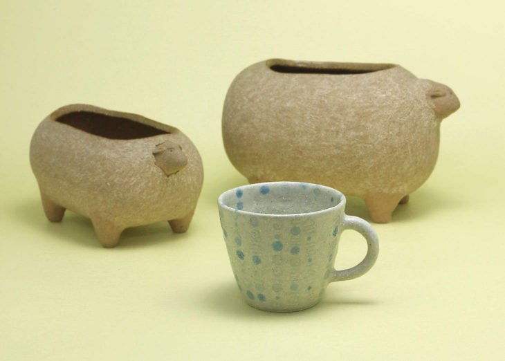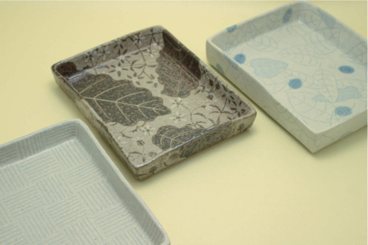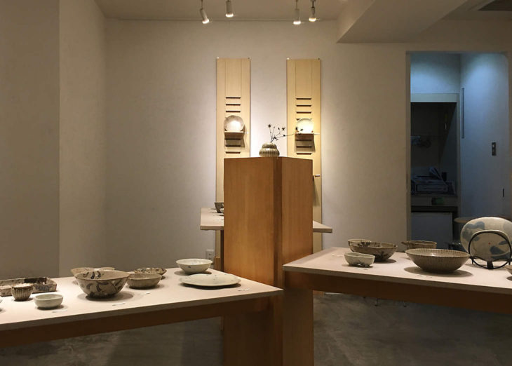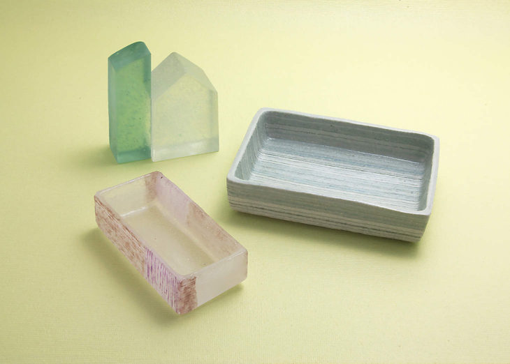 ガラス作家との二人展。パート・ド・ヴェールというガラスの粉を鋳型に入れて溶かす技法で作っている作家さんです。